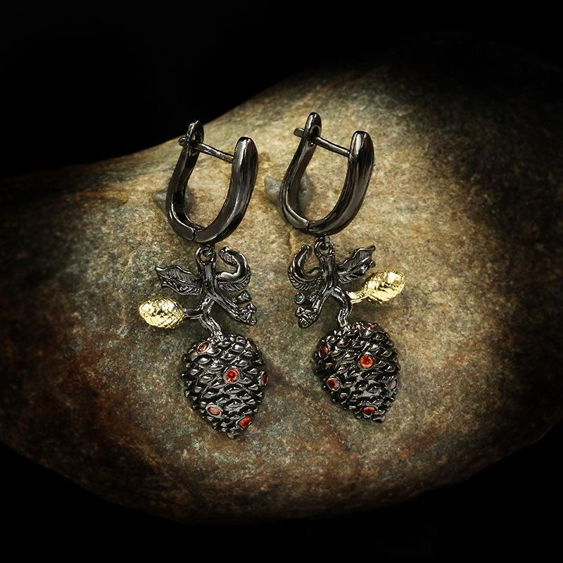 Italy Jewelry Vintage Flower Bud Inlay Ruby 925 Earrings Fashionable Black Gold Earrings Wedding Jewelry Gift