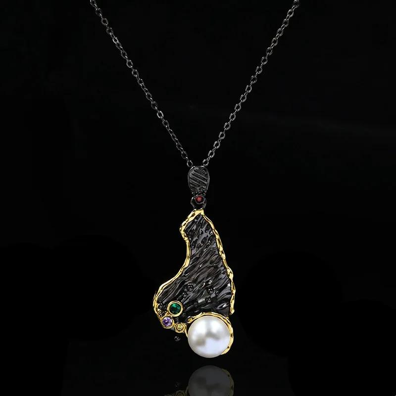 Vintage Bohemian Style Necklace Irregular Color Pattern Zircon Pearl Black Gold Series Pendant Clavicle Chain Ladies Jewelry