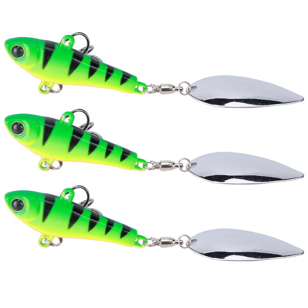 3pcs Artificial Fishing Lures Sequins Rotating Aluminum Hard Bait for Fishing Long ShotBlack Green