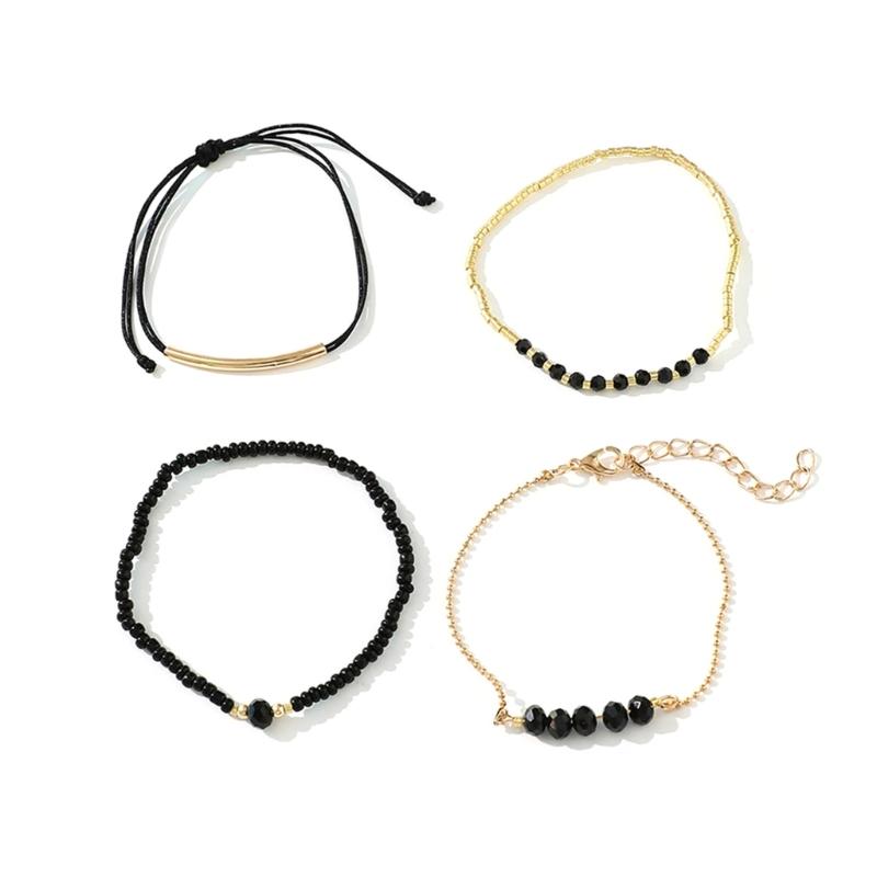 Elegant Black Crystal Imitation Bead Bracelet Set for Women Adjustable Length Handchain Fashion Jewelry Accessories
