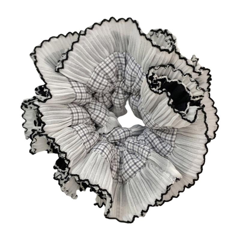 Aesthetic Scrunchies Elastic Multilayer Lace Hair Rope Wedding Party Beach Headwear Big Buns Hair Elastic Check Hairtie