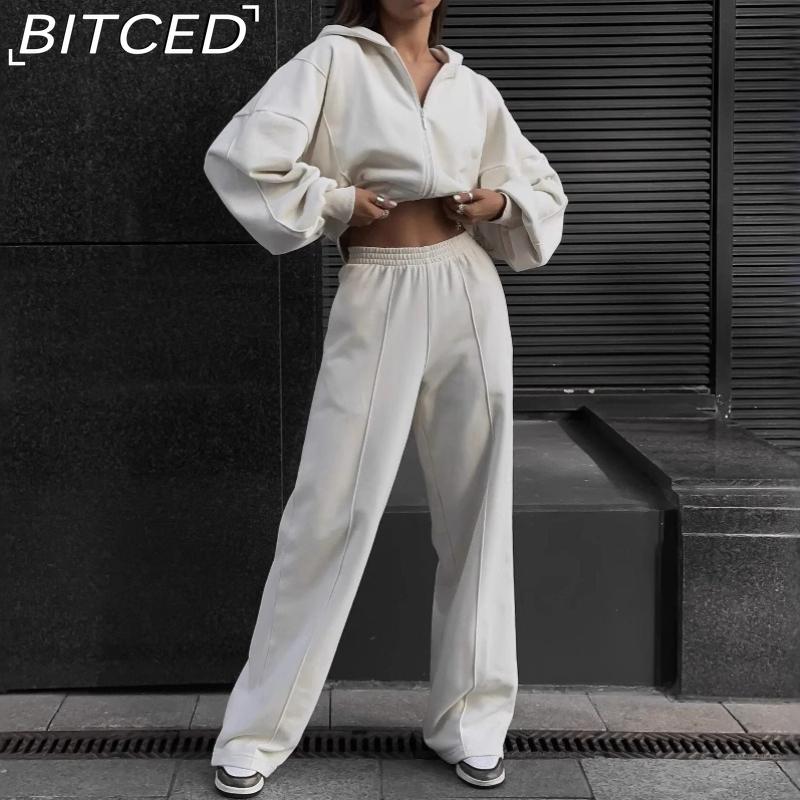 BITCED Casual American-style Autumn/winter Cardigan Set Sporty Streetwear-inspired Long-sleeved Women's Jacket and Trousers Two-piece