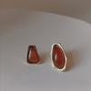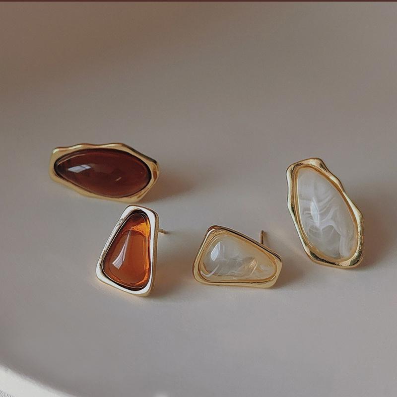 Vintage Temperament Asymmetric Brown Resin Stud Earrings For Women Female Gift Fine Fashion Jewelry Accessories