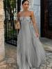 Strapless Ruffle Detail Maxi Dress Women Side Cutout Waist Tiered Dress