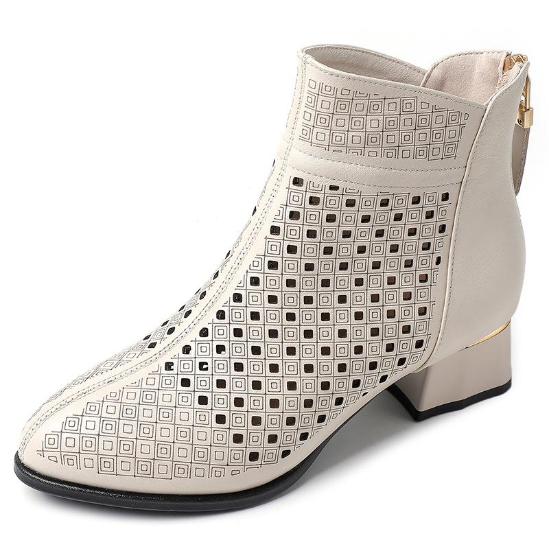 Fashion GKTINOO Ankle Boots Zipper Footwear Hollow Out Fashion Ladies High Heels Round Toes Genuine Leather Summer Shoes