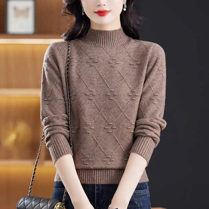 2025 New Thickened Warm Semi-turtleneck Knitted Sweater Women's Autumn and Winter New Solid Color Bottom Pullover Loose Knitted Sweater