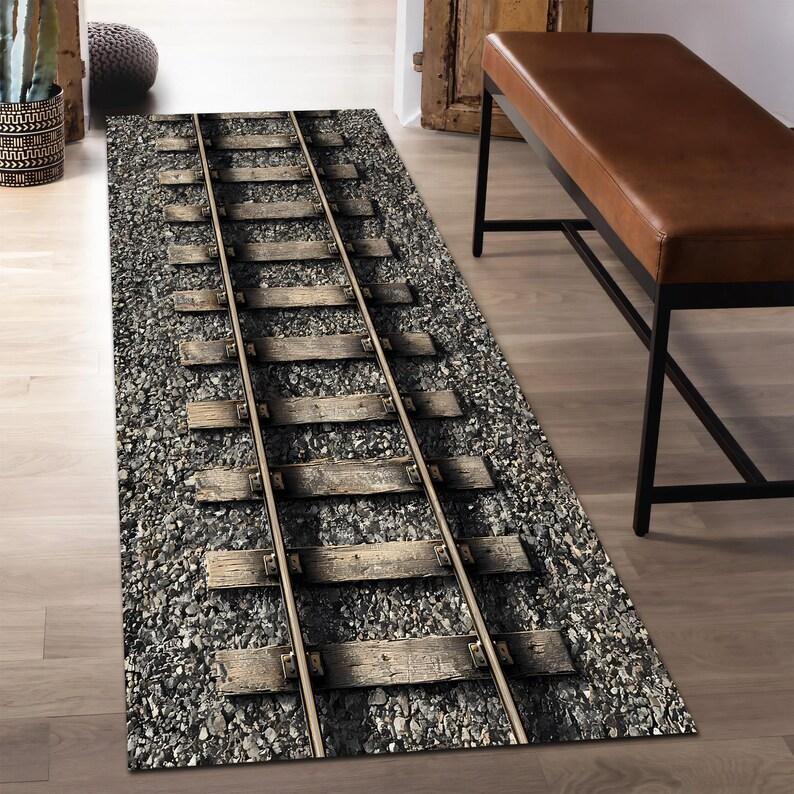 Railroad Track Rug Illusion Hallway Runner 3D Rustic Train Track Carpet Entryway Industrial Decor Boys Room Optical Illusion Rug