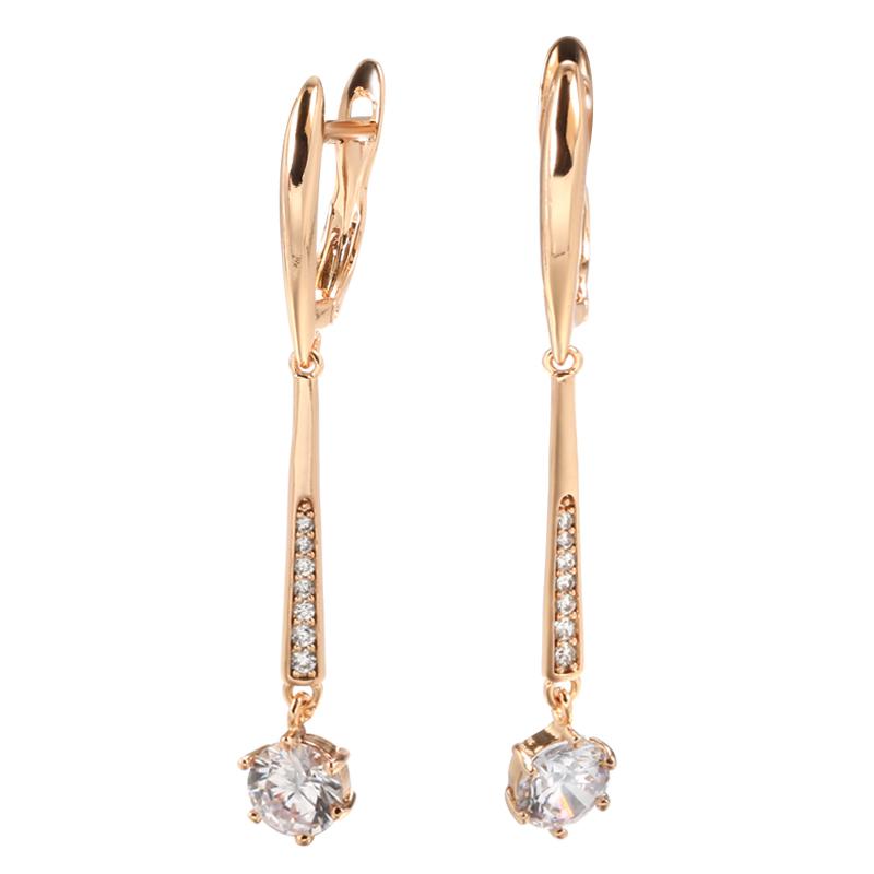 Kinel Vintage Rose Gold Color Long Earrings Zircon Pendant Jewelry KTJ