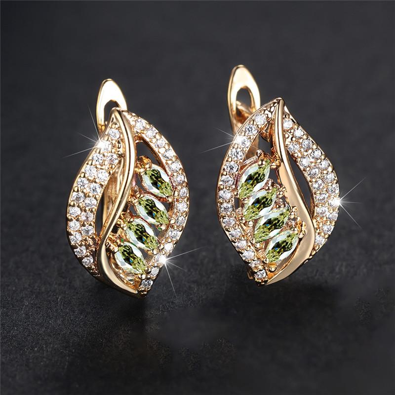 Cute Female Olive Green Crystal Zircon Stone Hoop Earrings Dainty Gold Color Wedding Bridal Jewelry For Women
