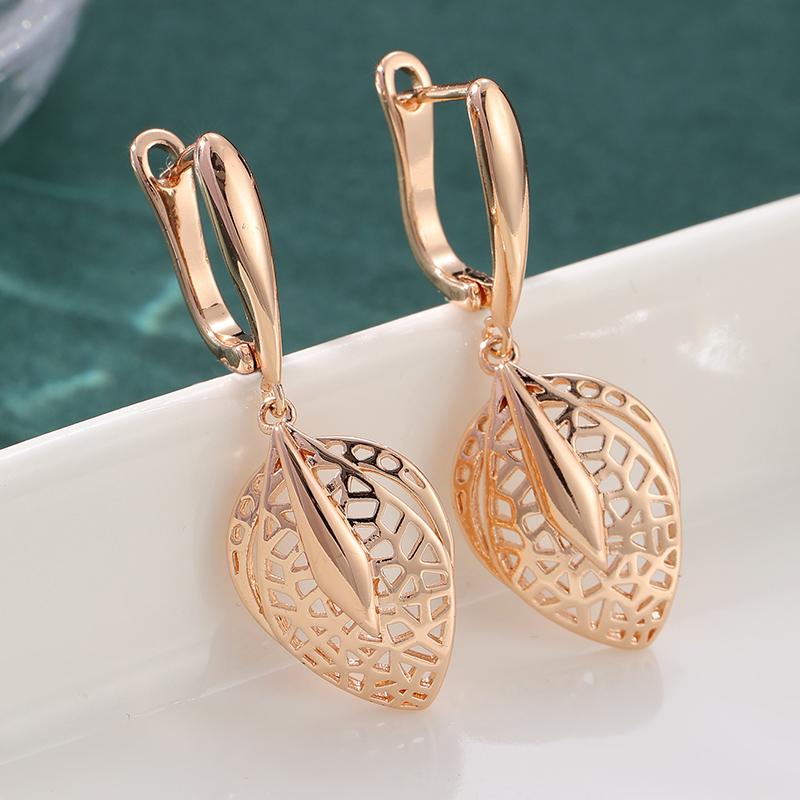 Exquiaite Hollowed Leaf-shaped Golden Plated Pendant Earrings for Women Elegant Daily Holiday Jewelry Accessories Crafts