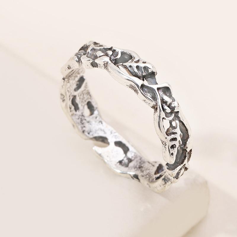 Huajie Charming Women's Flower Carving Ancient Silver Color Rings Hollow Elegant Banquet Ring Trendy Tide