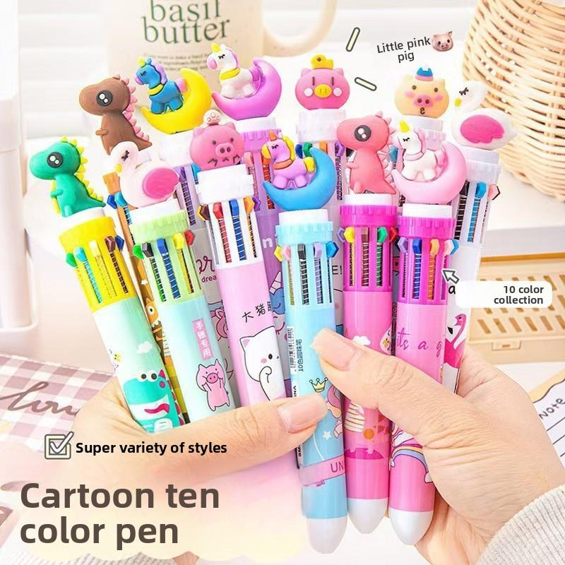 Ten-color Ballpoint Pen Girl Heart Cartoon Press Multi-color Pen Multi-function Color Handbook Pen Creative Cute Pen