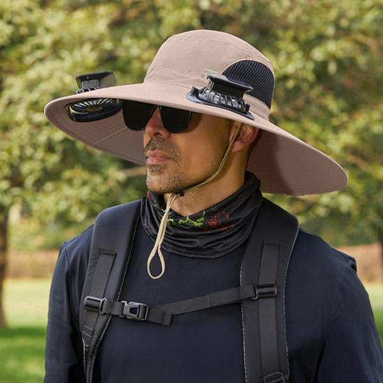 Yousheng Men Sun Hat with Dual Power Supply Fan Design Three-Speed Wind Adjustable Wide Brim Fishing Hat Fishing Hiking Hat