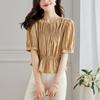 French Style Short Blouse for Women In Summer Latest Design Niche Pleated Waist-hugging Blouse