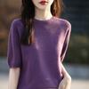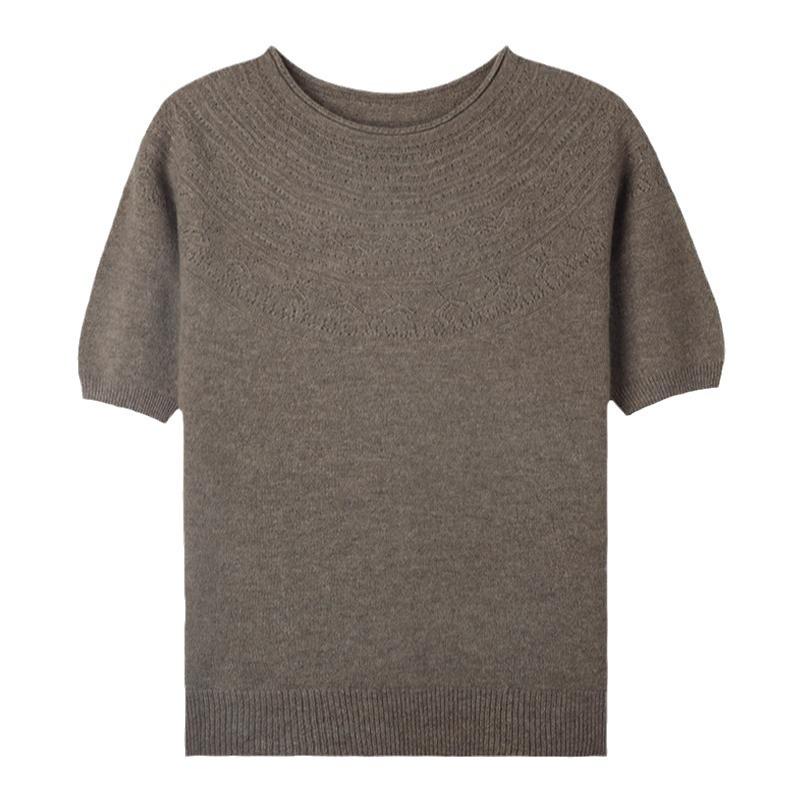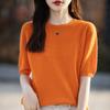 Knitted Short-sleeved T-shirt for Women In Summertime New Loose Pullover Sweater Large Size Round Neck Hollow Inner Layer Bottoming