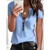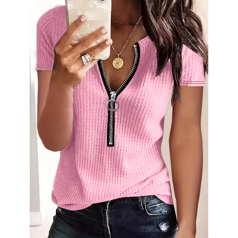 Women's Solid Color Half Pull Short Sleeved T-shirt for All Seasons