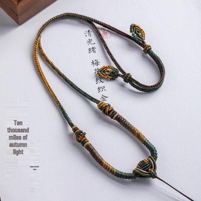 Premium Handmade Peach Blossom Knot Necklace Rope with Jade Accent