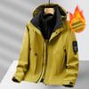 Men's Waterproof Hooded Windbreaker with Fleece Inner Layer - Plus Size, Softshell Jacket for Spring, Autumn, and Winter.