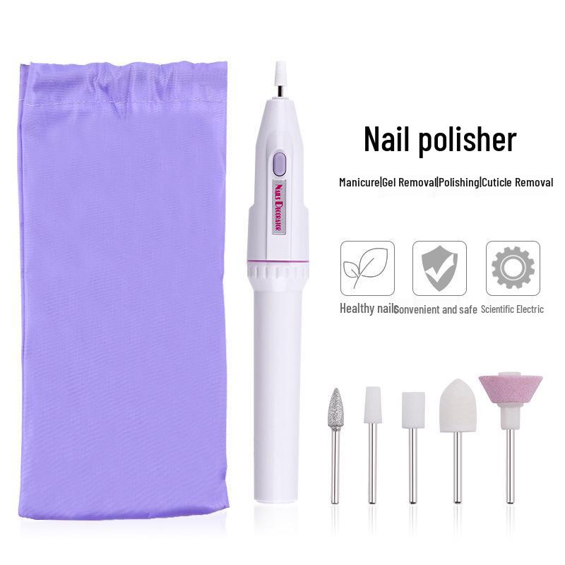 Mini Electric Nail File Pen with 5 Grinding Heads & Purple Cloth Bag