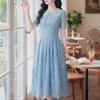 ZANZEA Women Casual Round Neck Summer Lace Patchwork Short Sleeve Dress