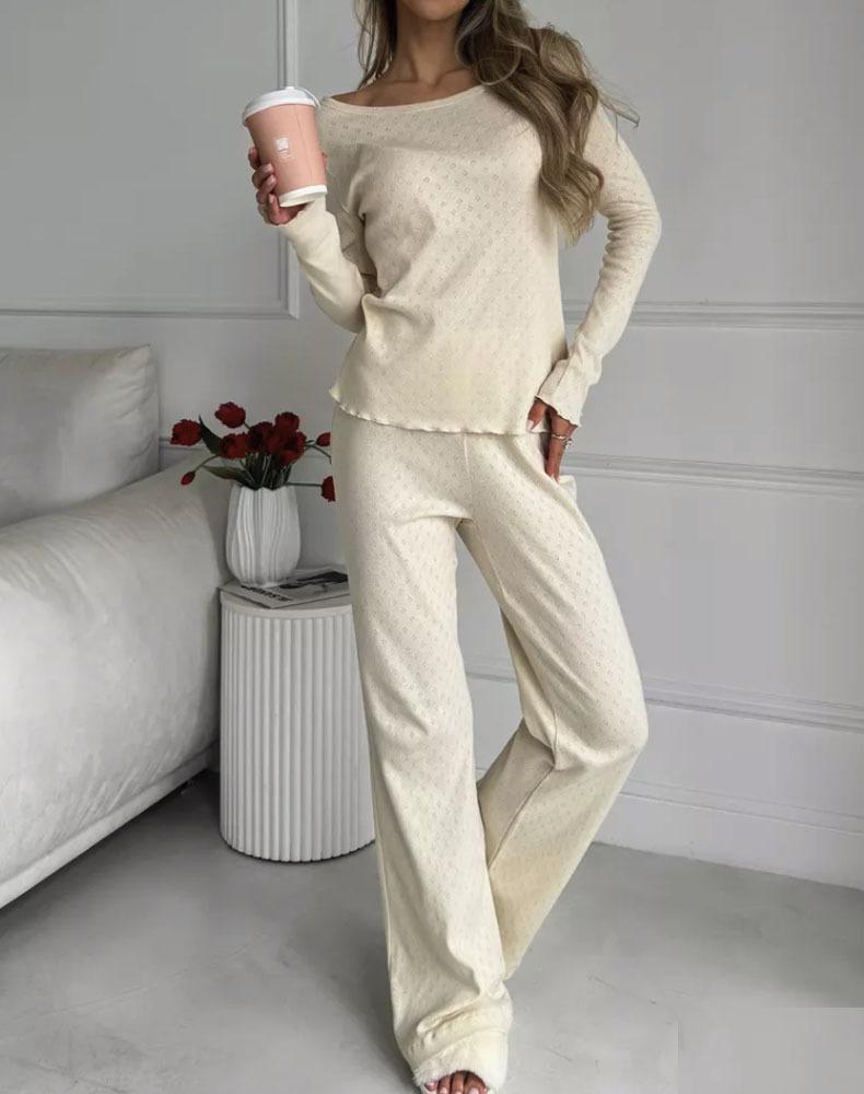 Fashion Women, Exquisite Cotton Spring and Autumn Pure Cotton Long-sleeved Trousers Home Two-piece Loungewear
