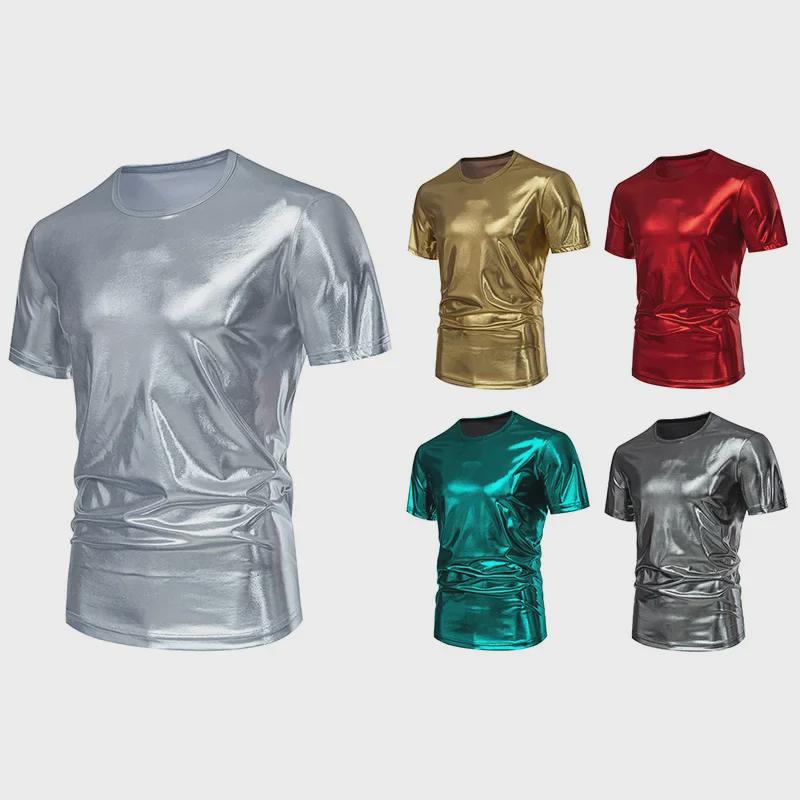 This trendy short sleeve round neck t-shirt is designed for those who love to stand out. Crafted from high-quality acrylic material, it offers both comfort and style for any casual or semi-formal occasion. The shirt is adorned with an eye-catching pattern that adds a touch of flair to your outfit, making it perfect for those who enjoy a shiny, stage-ready look. Ideal for making a bold statement, this t-shirt is a must-have addition to your wardrobe.