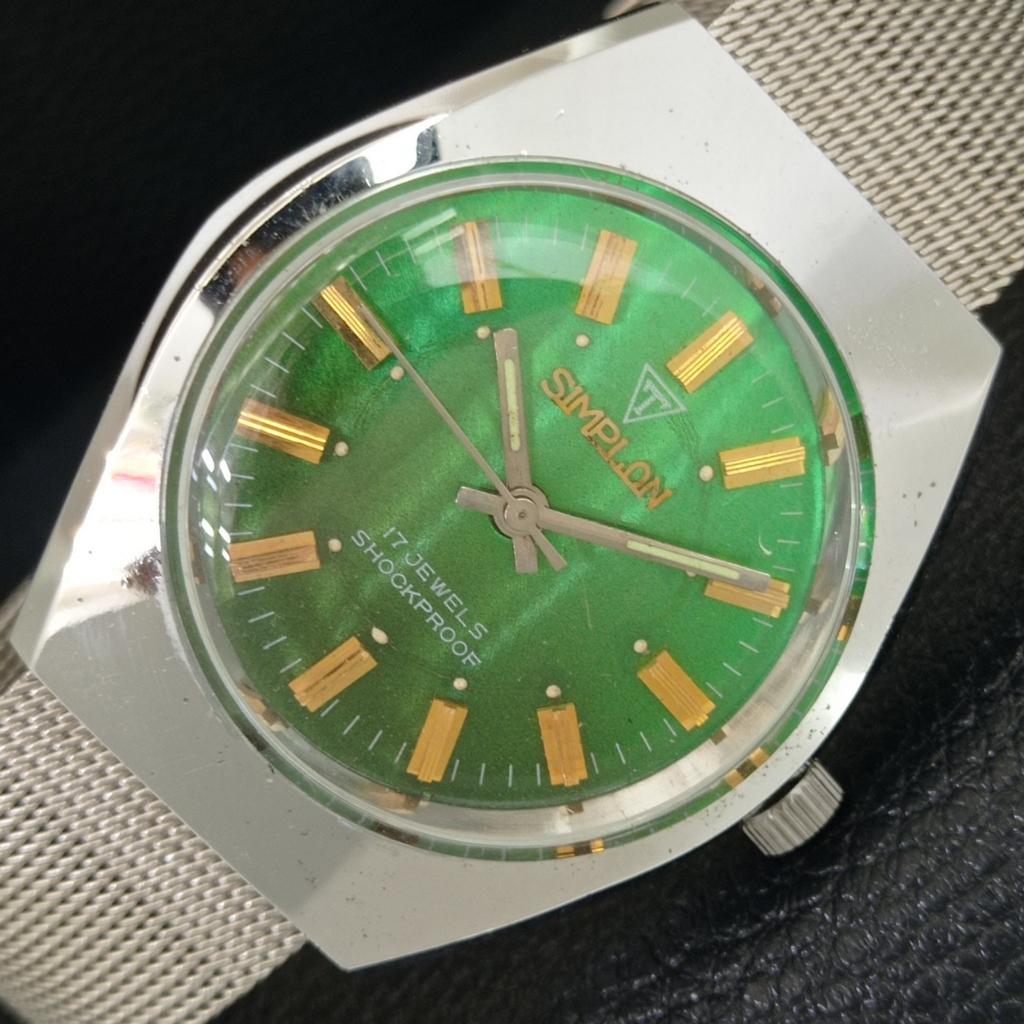 VINTAGE SIMPLON HAND-WINDING SWISS MENS REFURBISHED GREEN DIAL WATCH A704625-1