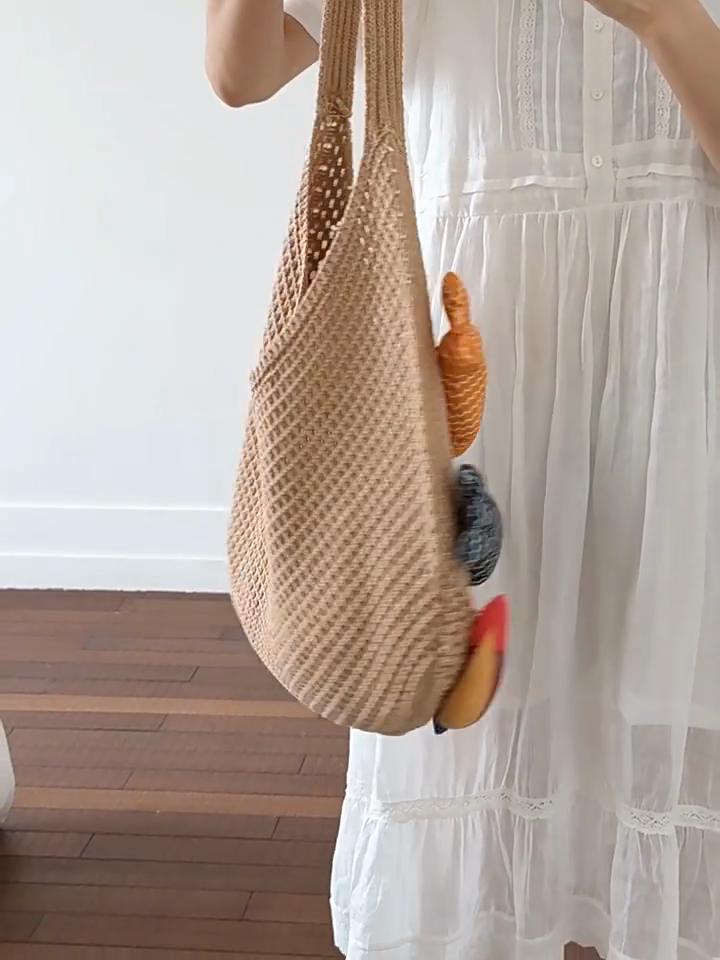 Yogodlns New Fish Cute Crochet Tote Bag Large Capacity Casual Woven Shoulder Bag Multicolor Handmade Knitted Bag