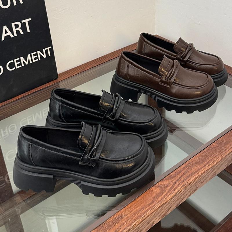 Designer Spring British Style Women Chunky Loafers Shoes Concise Shallow Slip On Shoes Elegant Thick Heel Leather Shoes