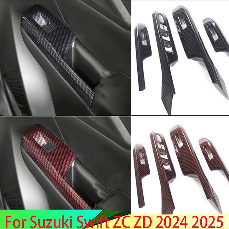 For Suzuki Swift ZC ZD 2024 2025 Car Accessories Carbon Fiber Style Door Window Armrest Cover Switch Panel Trim Molding Garnish