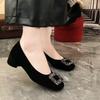 Shallow Single Shoes Autumn Square Head Shallow Mouth Soft Sole New Rhinestone French Black Temperament Shoes