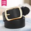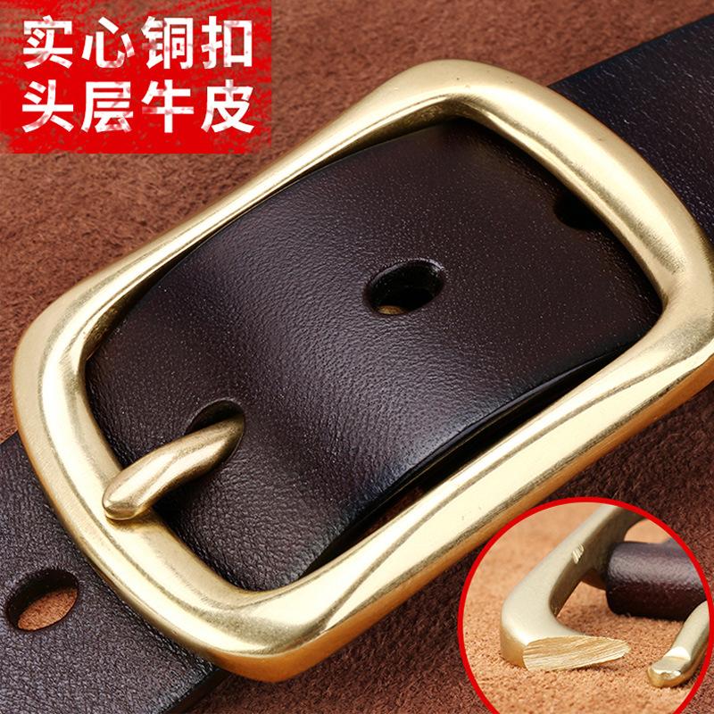 Men'S Belt First Layer Cowhide Copper Buckle Leather Belt Middle-Aged And Young Leisure Simple Pin Buckle Business Jeans Belt