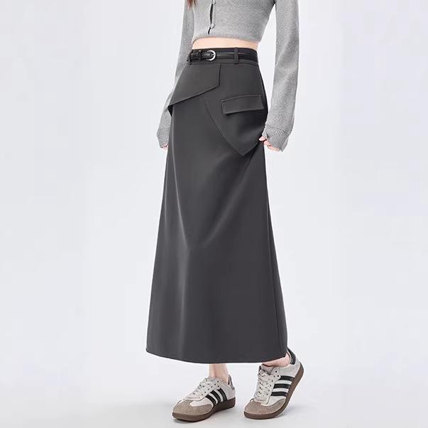 Irregular Split A-line Midi Skirt - Women's 2026 Spring High Waist Hip-hugging Fashion.