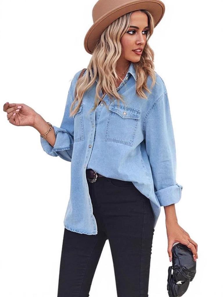 TEMU Women's Slim Fit Denim Shirt Jacket