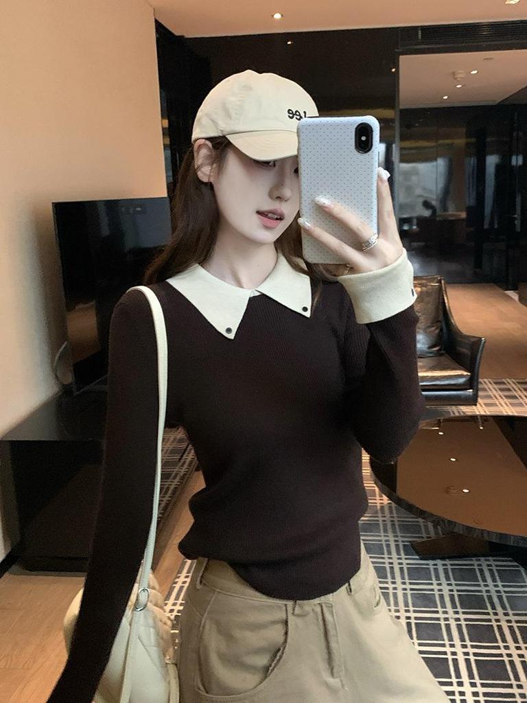 Niche Design Slim-Fit Two-Piece Knit Sweater - Women's Long-Sleeve Base Top for Autumn/Winter