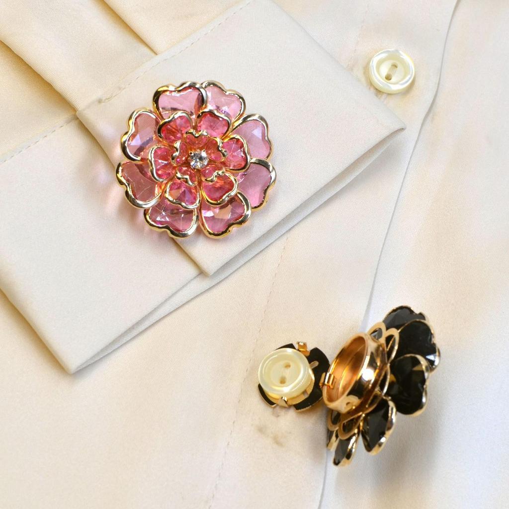 Crystal Flower Button Covers Detachable Clip-On Shirt Coat Decorative Buttons Sewing Button for DIY Blouses Clothing Women Men