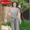 Women's Summer Two-Piece Outfit with Tie-Waist Top & Wide-Leg Pants