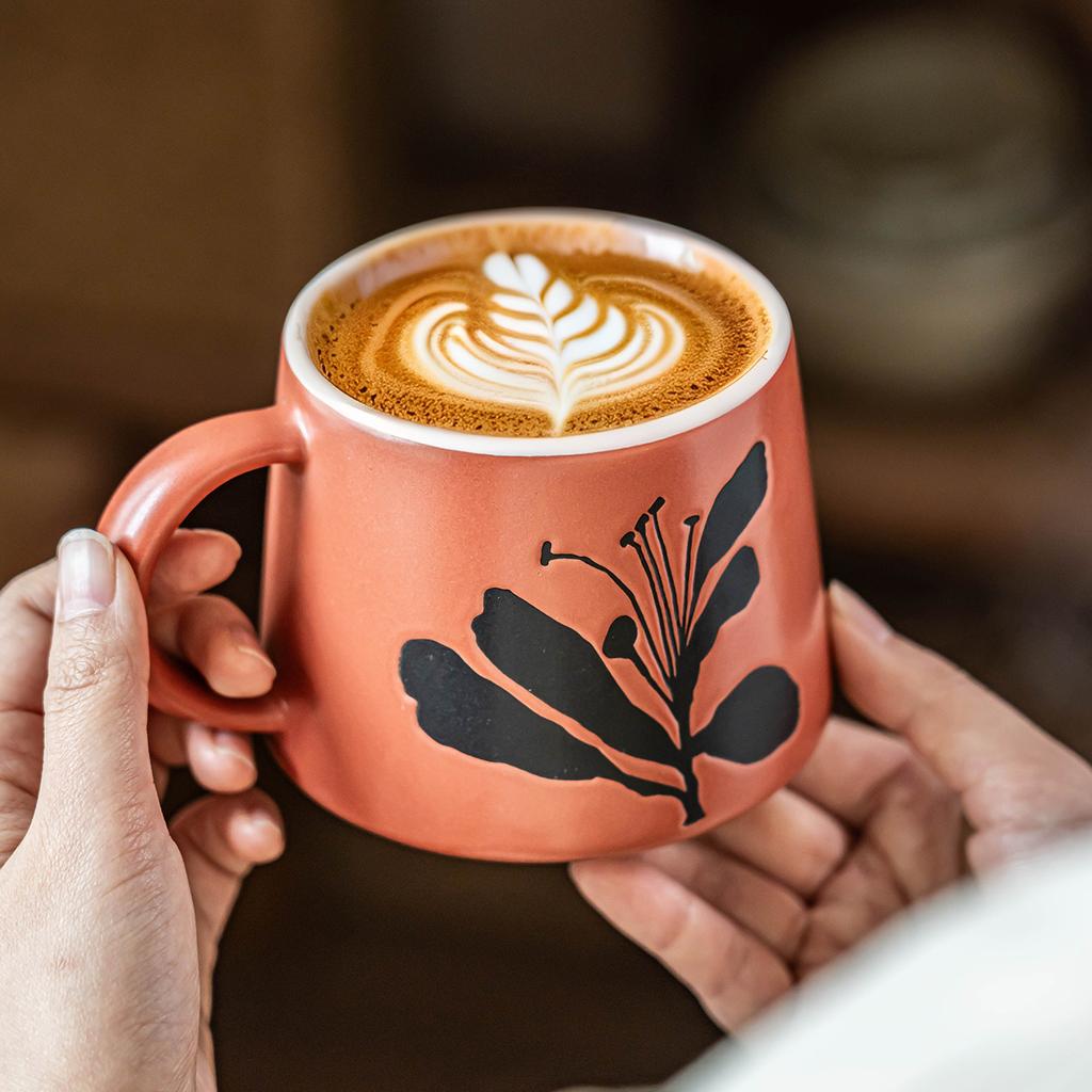 High Value Ceramic Mug Relief Flower Breakfast Cup Household Cup Cup Large Capacity Coffee Cup Water Cup
