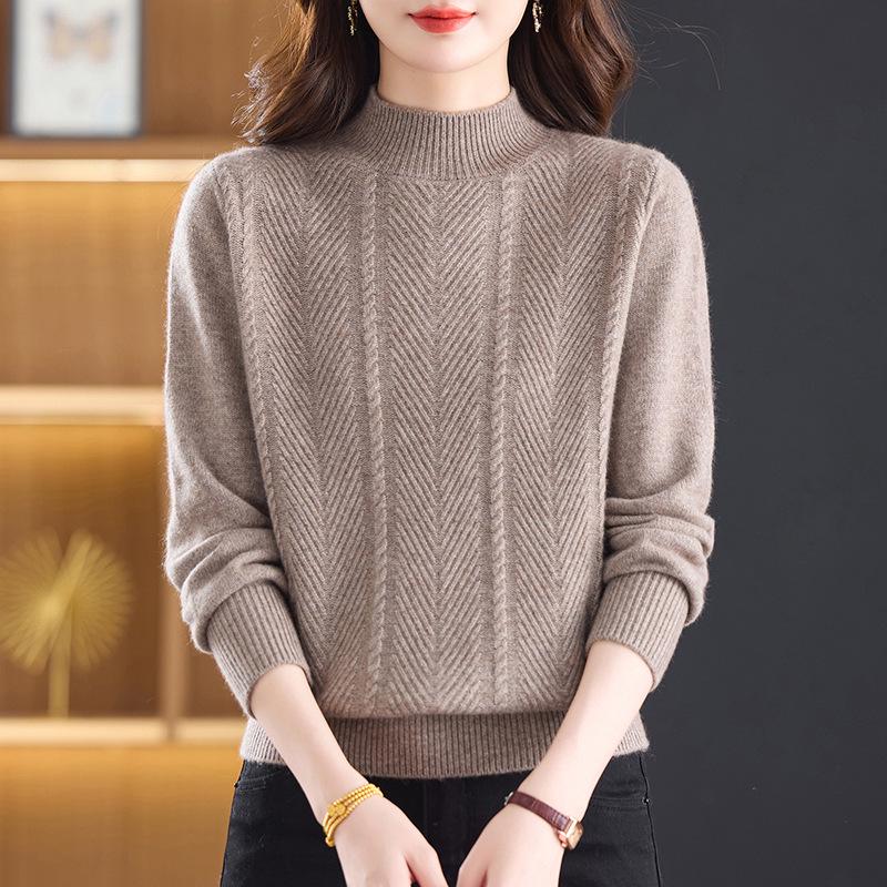 Introducing a luxurious and cozy sweater perfect for the autumn and winter seasons, designed specifically with middle-aged and elderly women in mind. Crafted from high-quality sheep wool, this thick-knit garment ensures warmth and comfort while maintaining breathability. The half-high collar adds an elegant touch, providing extra protection against the chill. This timeless piece is perfect for layering and effortlessly complements any wardrobe, offering both style and practicality for cooler days.