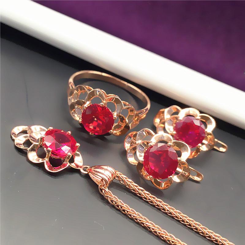Exquisite Russian 585 Purple Gold Lace Earrings Fashionable And Noble Rose Gold-Plated Red Stone Foreign Gas Color Gold Ear Buckles