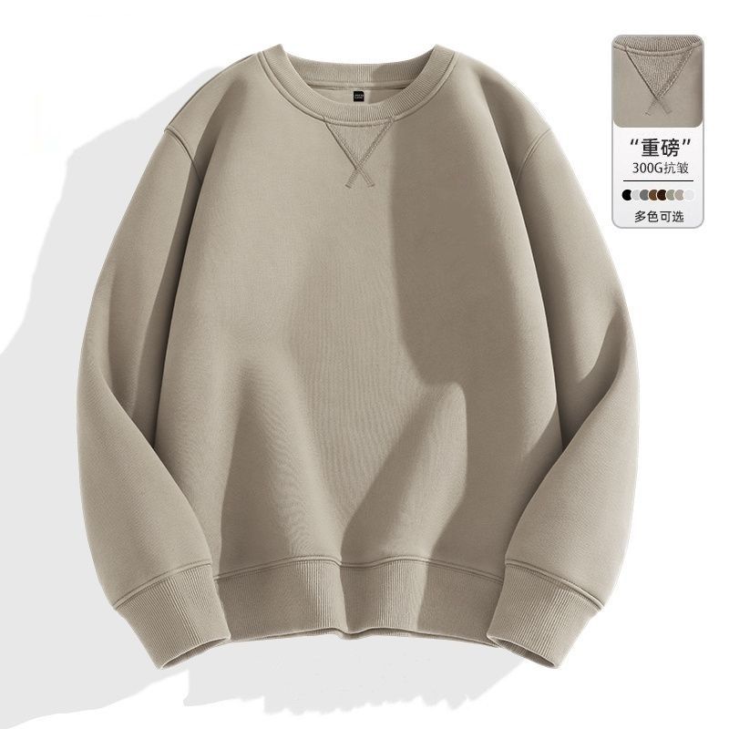 Solid Color Round Neck Hoodie Men's Heavyweight Long Sleeved Versatile Loose Casual Top Hooded Pullover