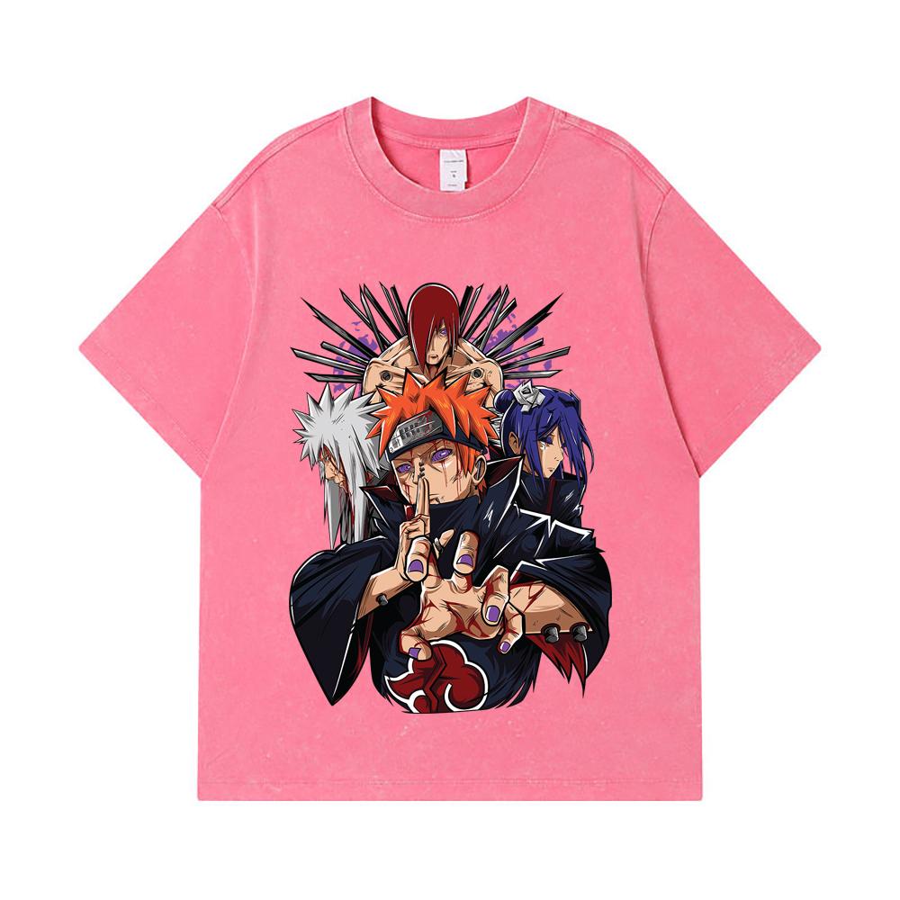 275 GSM Washed T-shirts 100% Cotton Naruto V10 Pain Print Unisex Heavy Cotton T Shirt