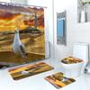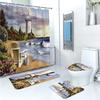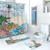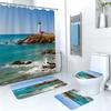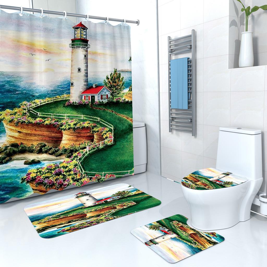 Shower Curtain Digital Printing Shower Curtain Lighthouse Landscape Polyester Bathroom Partition Curtain Bathroom Four-Piece Set
