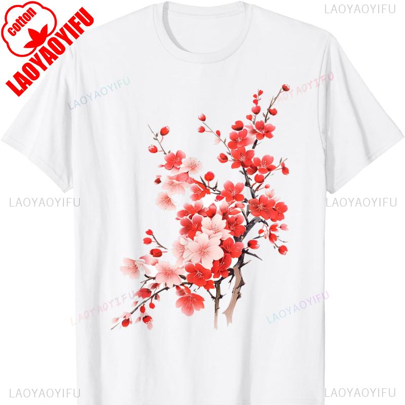 Cherry Blossom Flower Lover Art Graphic Flower TShirt Crew Neck Short Sleeve Cotton Top All Seasons Casual Fashion Comfortable