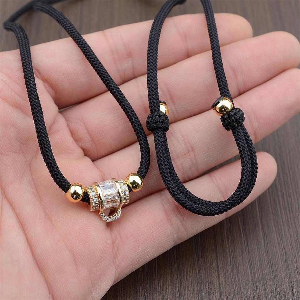 Hand-Woven Alloy Jade Pendant Necklace with Gold Lanyard Rope, Unisex and Versatile