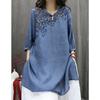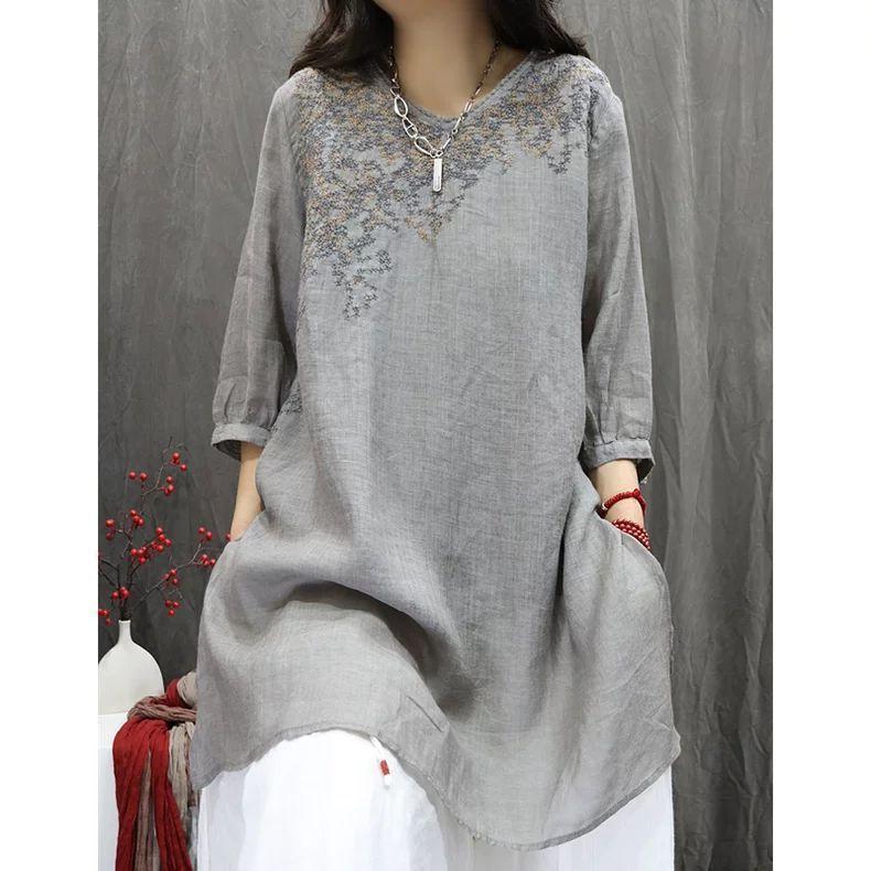 Spring Summer Retro Embroidered Shirt Loose Literary Leisure Mid-length Women's Top