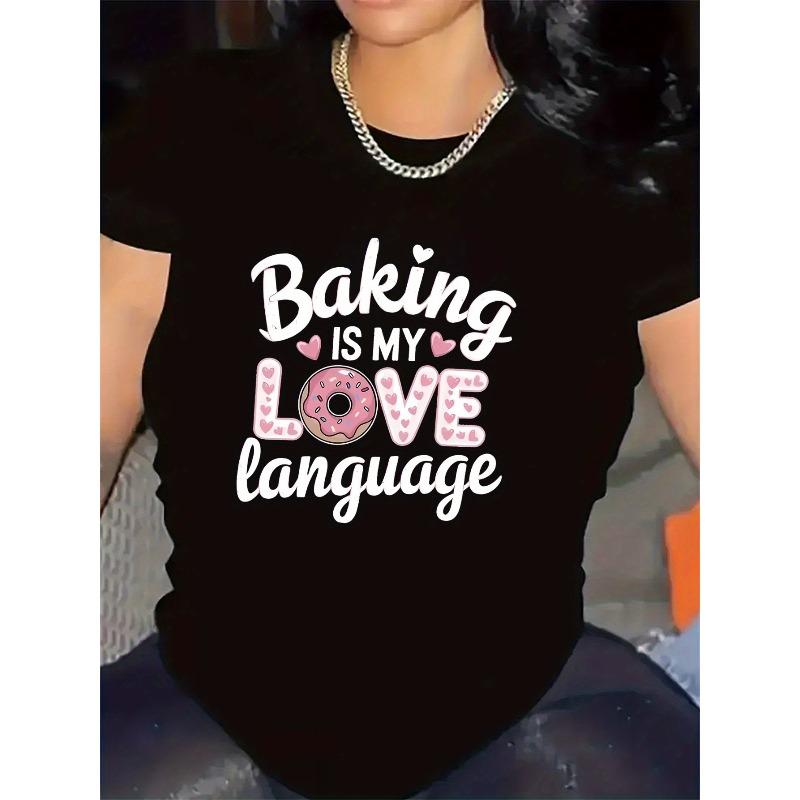 Women's Crew Neck T-Shirt Baking Is My Love Language Print Casual Daily Wear Gift for Baking Lovers