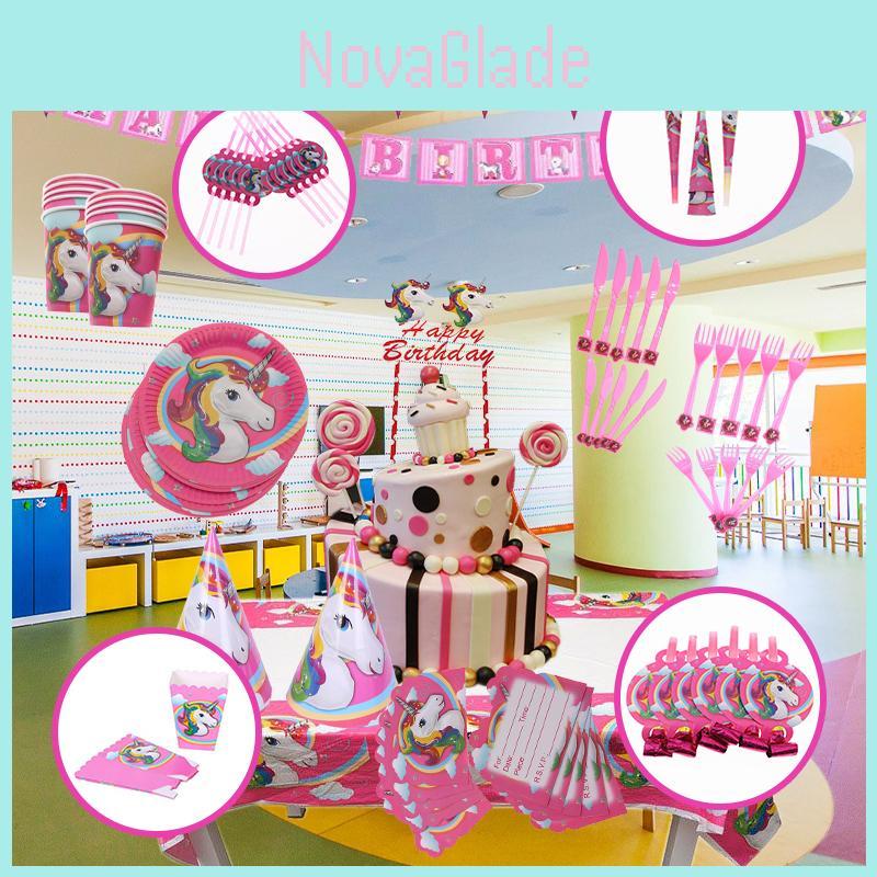 Magical Unicorn Kids Birthday Party Supplies Featuring Colorful Plates Cups And Banners