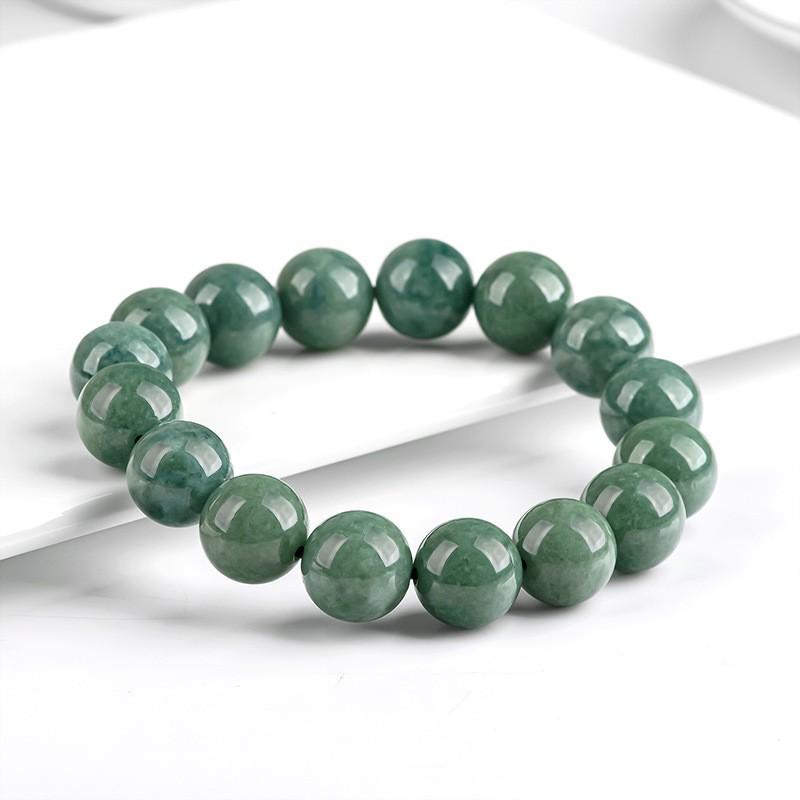 Natural A-Grade Ice-Type Green Jade Round Beads Bracelet for Men & Women