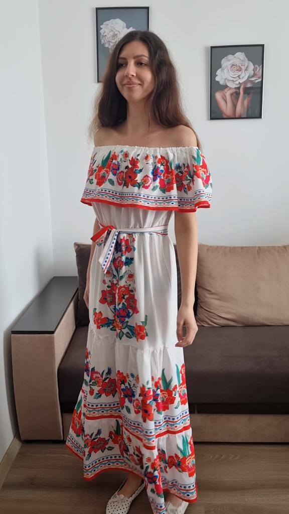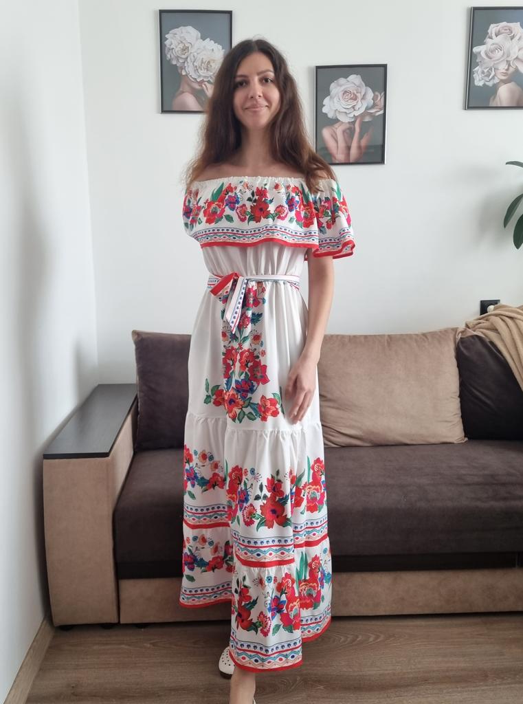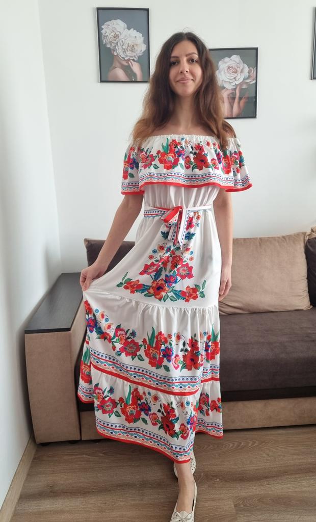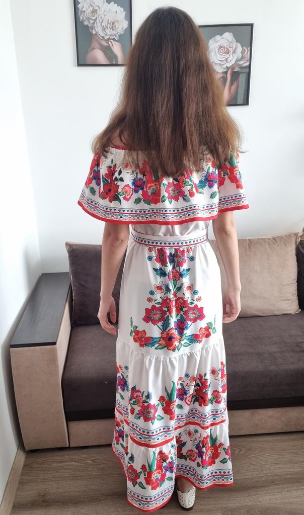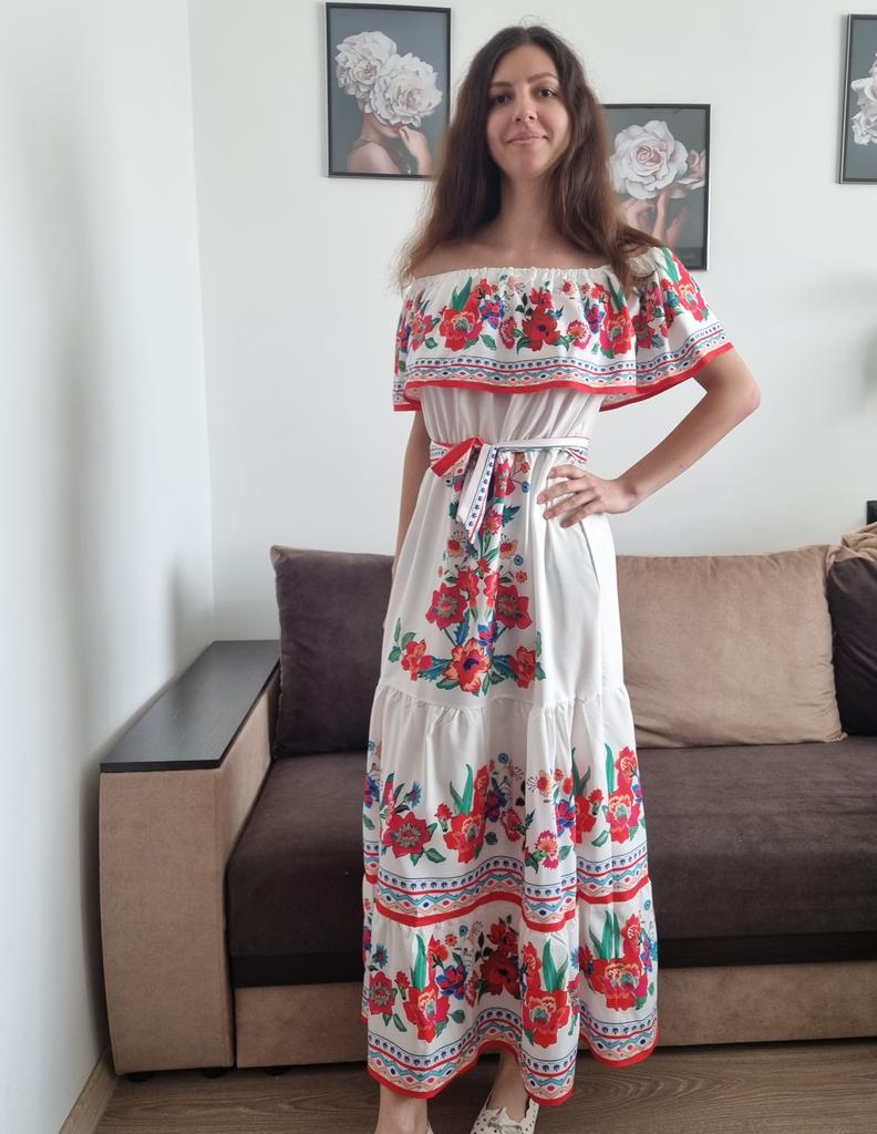 Bohemian Slash Neck Dresses Women Floral Print Waist Elegant Floor-length Dress Retro Clothing